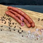 Schweinefleisch, Speck, Nitritpökelsalz (Konservierungsstoff: Natriumnitrit), Gewürze,Dextrose, Naturdarm