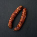 Schweinefleisch, Speck, Nitritpökelsalz (Konservierungsstoff: Natriumnitrit), Gewürze,Dextrose, Naturdarm