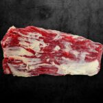 Das Roastbeef ist ein Stück aus dem mittleren Teil des Rinderrückens. Es ist etwas kerniger als beispielsweise das Rib Eye Bone In, aber dennoch feinfasrig, auch hier verleihen die intramuskulären Fetteinlagerungen Zartheit und Saftigkeit. Auch dieses Steak wird mit Knochen gereift (Dry Aged), dann ausgebeint und aufgeschnitten.